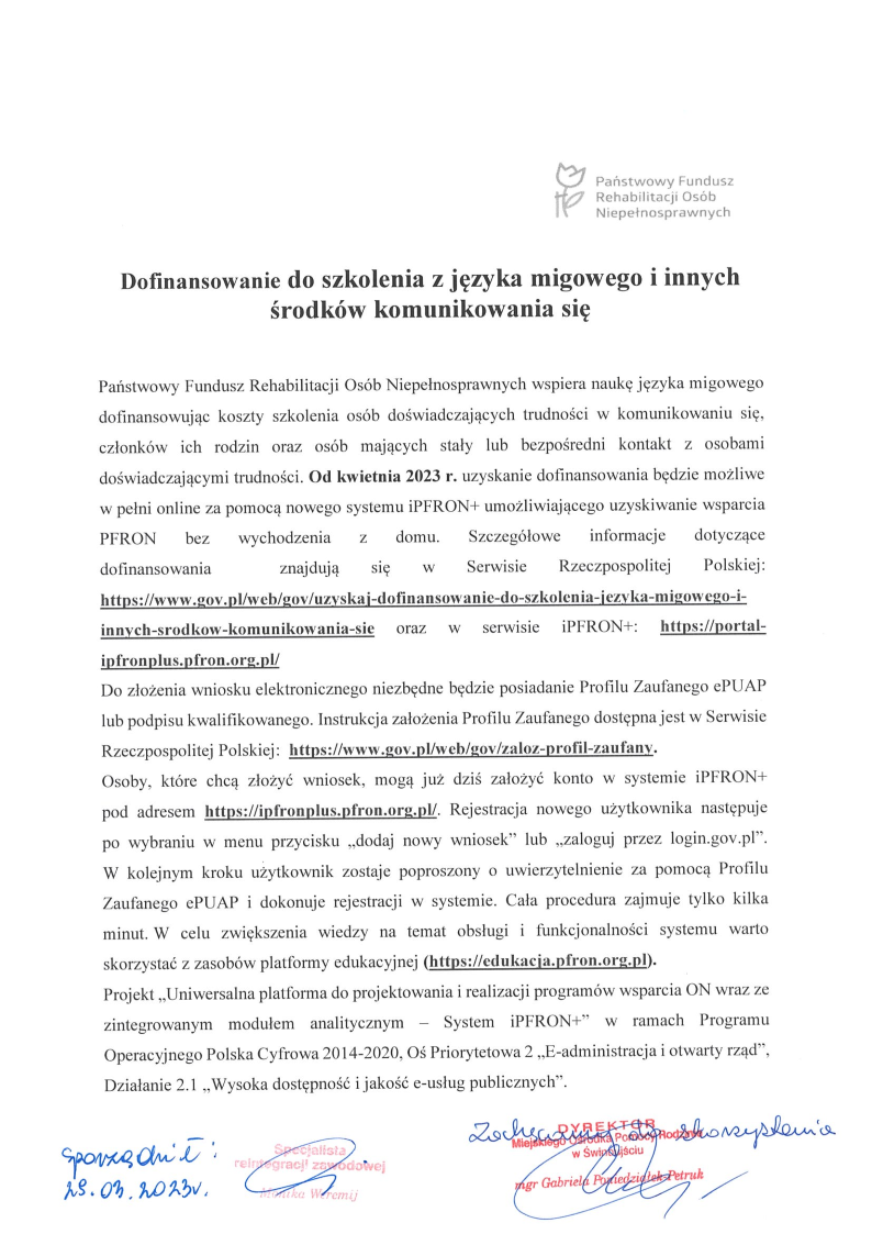 Dofinansowanie do szkolenia z języka migowego i innych środków komunikowania się